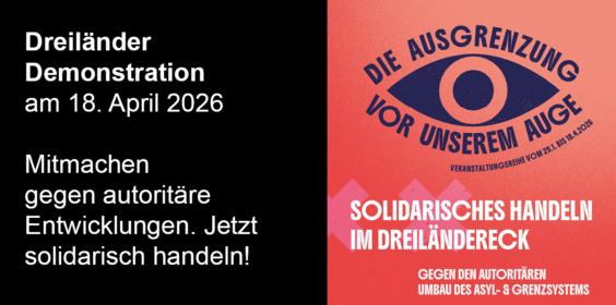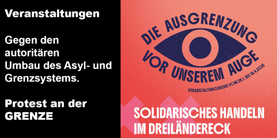 Mit unserer Veranstaltungsreihe wollen wir gegen all diese Entwicklungen politisch intervenieren. Unser Ziel ist es zu informieren und mit einer gemeinsamen Grenzaktion im Dreiländereck auch zum politischen Handeln aufzurufen.